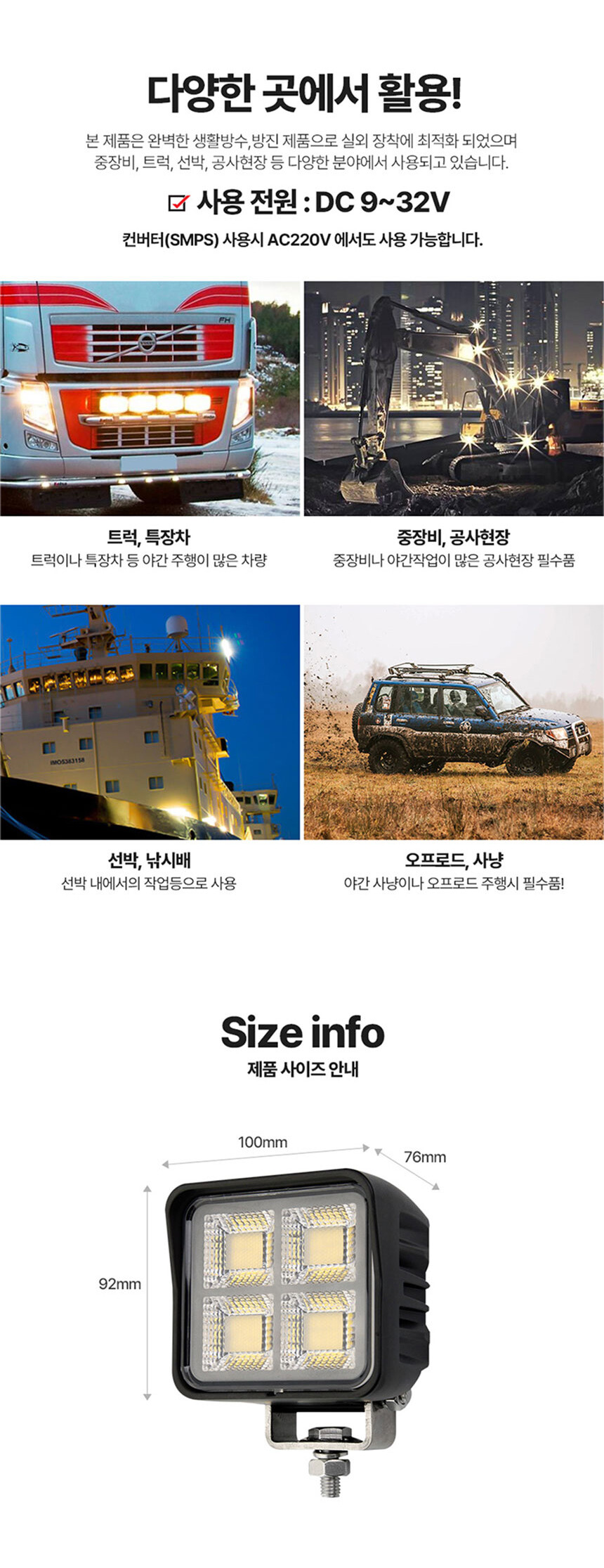 등 다양한 곳에서 밝은 빛을 비춰주는 DC 써치라이트입니다.