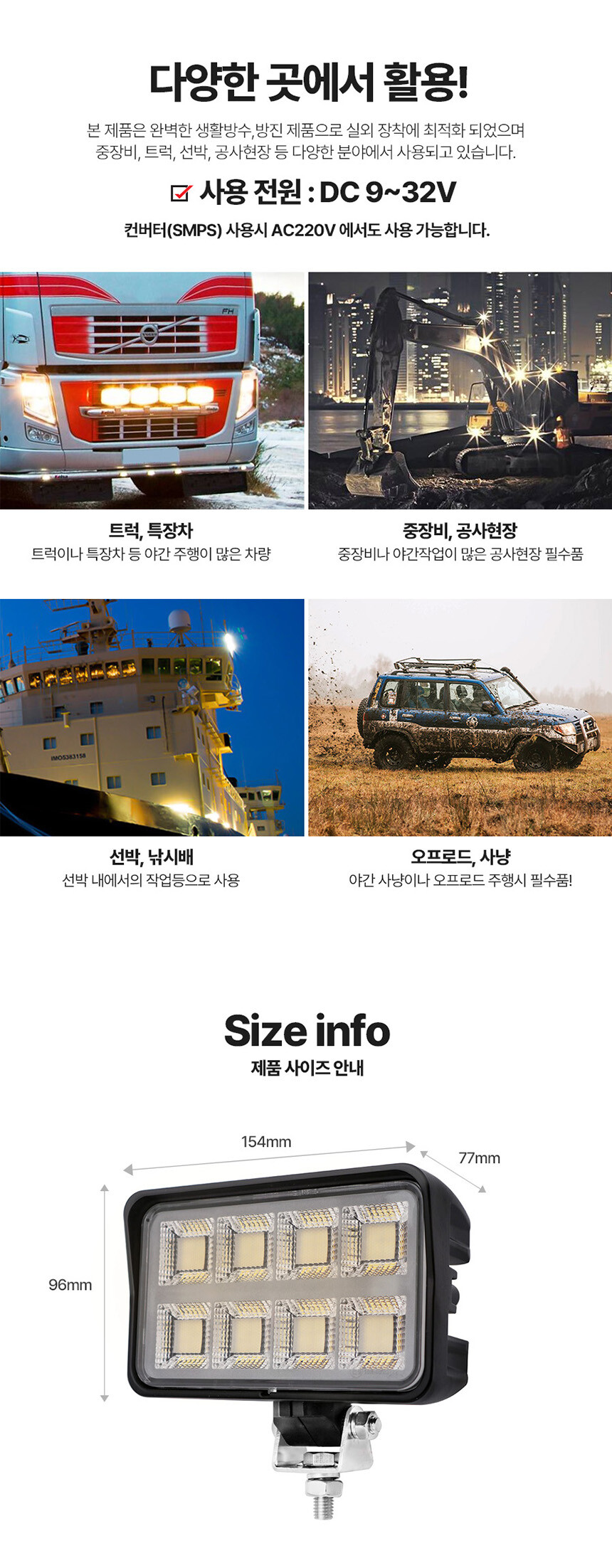 등 다양한 곳에서 밝은 빛을 비춰주는 DC 써치라이트입니다.