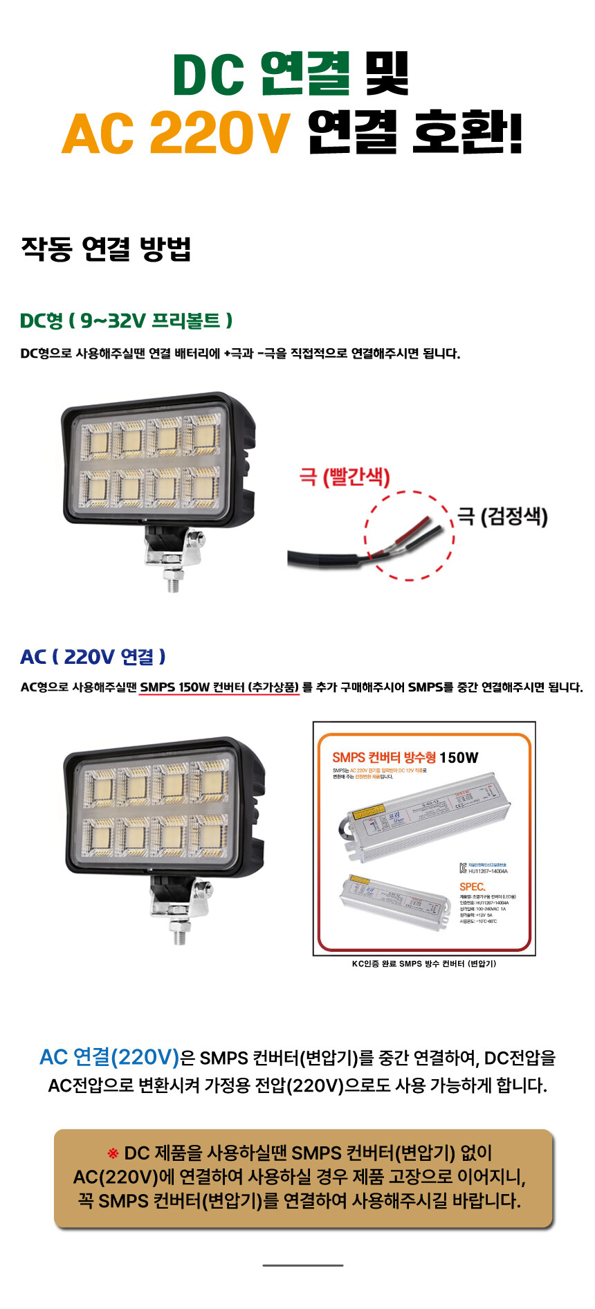 220V에 연결하여 AC용으로 사용할 시, 추가구성에서 컨버터를 함께 구매하시어 연결하시면 됩니다.
