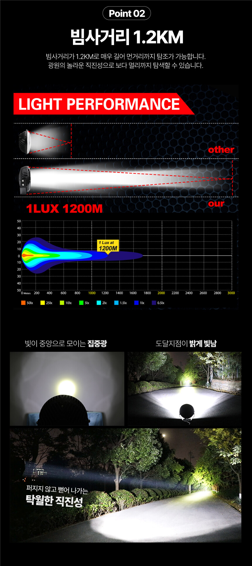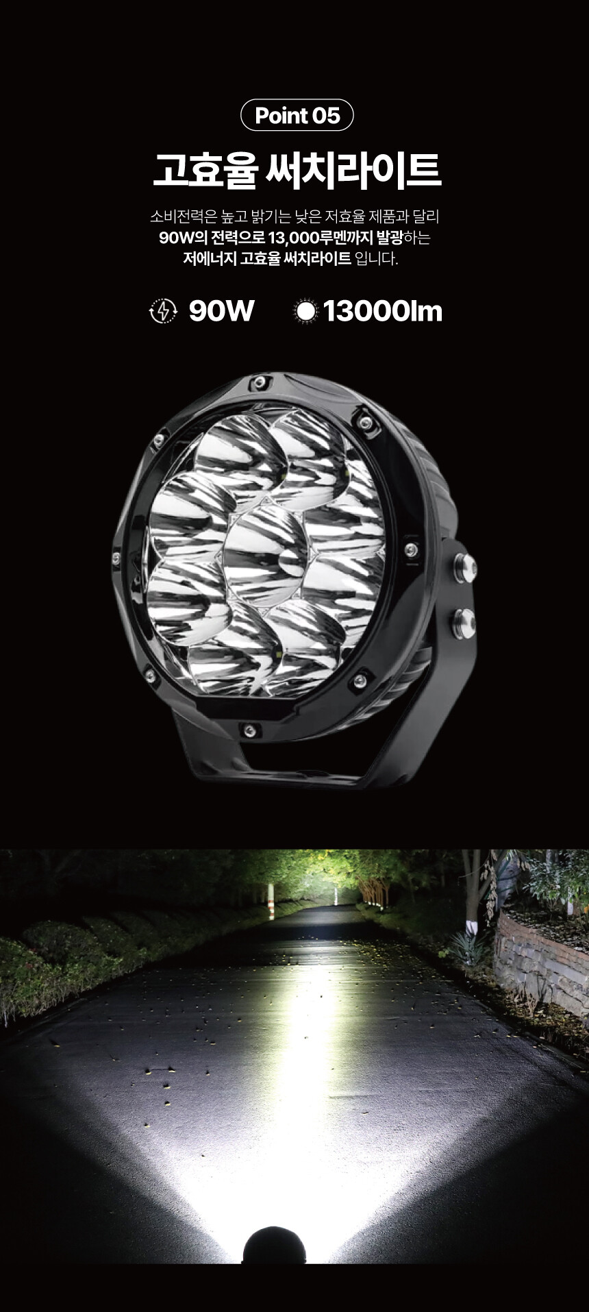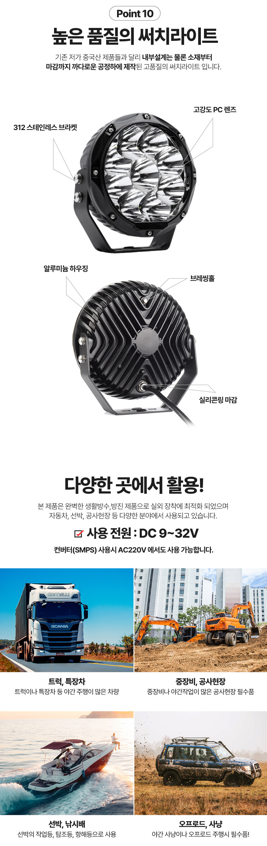 등 다양한 곳에서 밝은 빛을 비춰주는 DC 써치라이트입니다.
