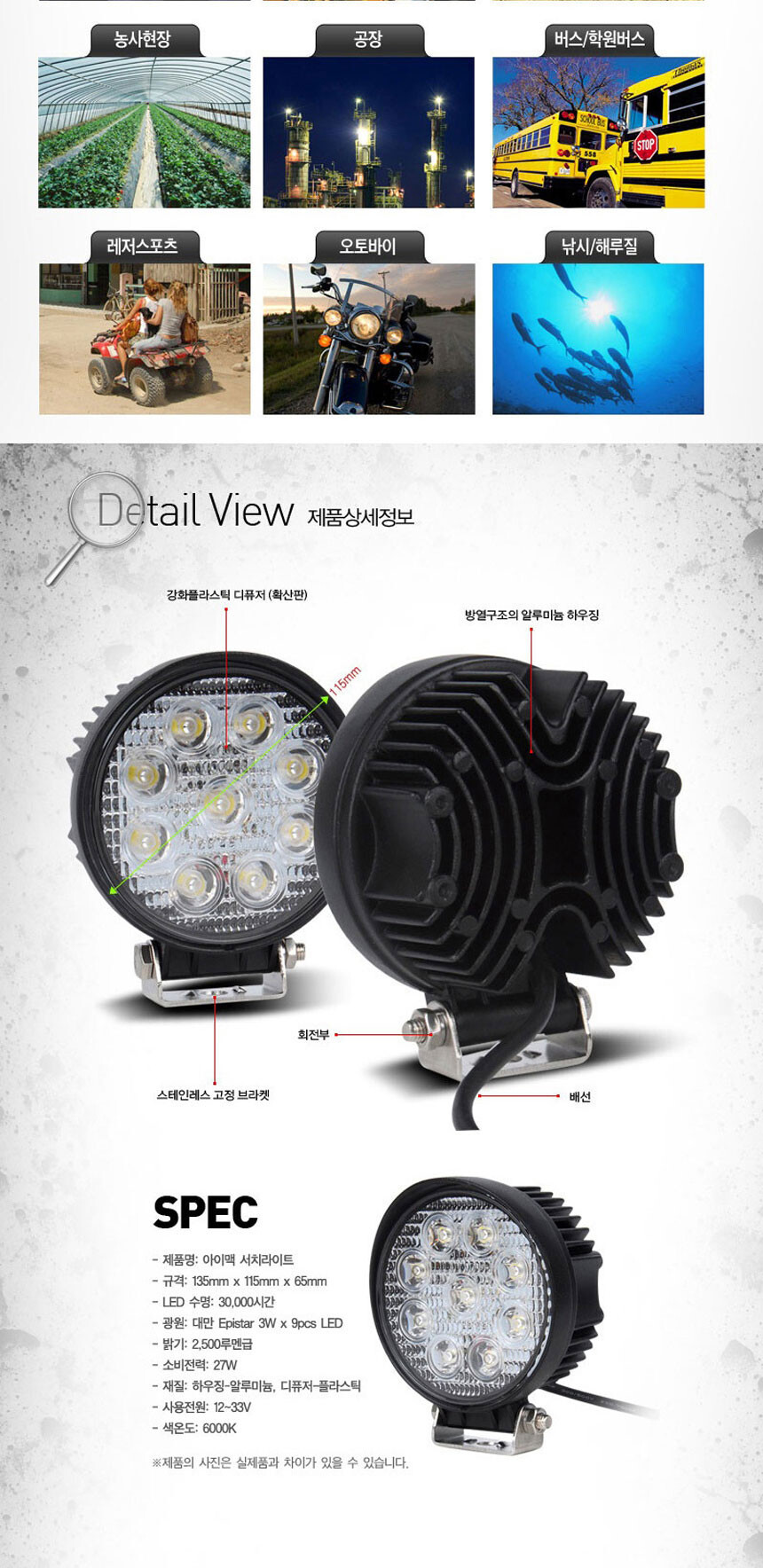 등 다양한 곳에서 밝은 빛을 비춰주는 DC 써치라이트입니다.