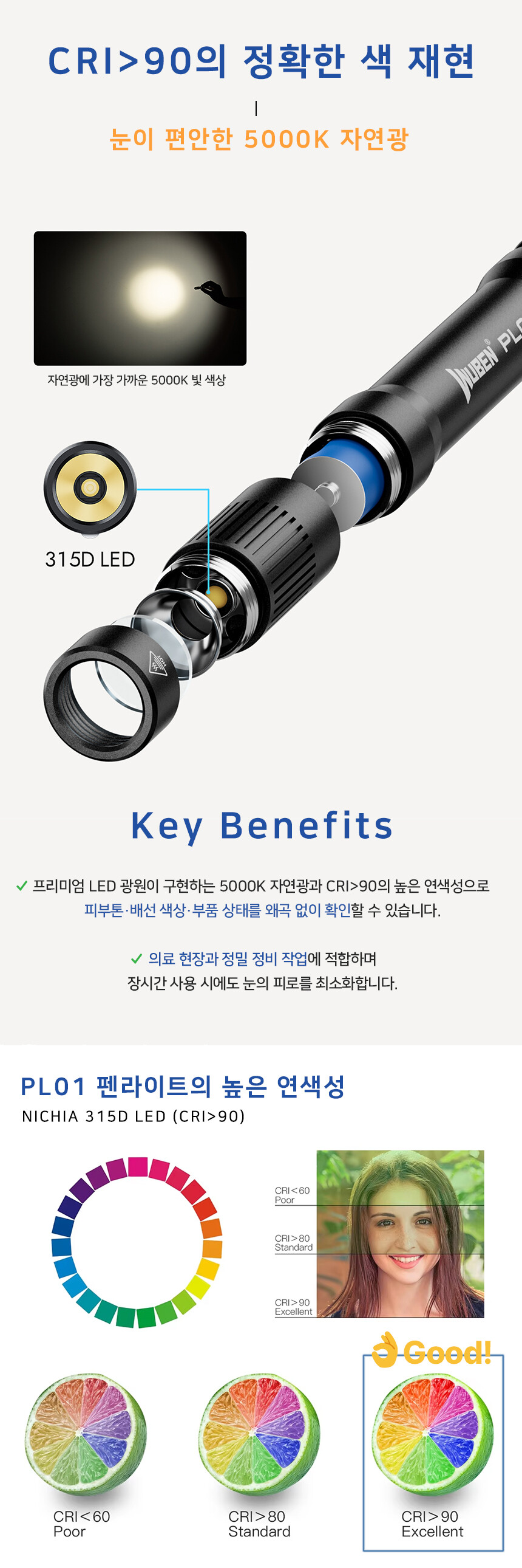 안구, 구강 등 간단한 검사 시, 사용할 수 있는 고성능 펜라이트입니다.
